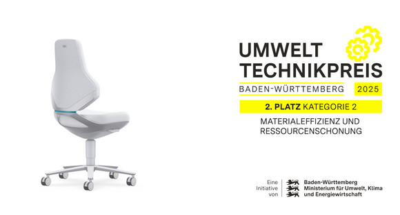 Mit Skintec revolutioniert Interstuhl die Herstellung von Polstermöbeln: Das neue Sprühhaut-Verfahren verzichtet vollständig auf klimaschädliche Treibmittel, reduziert das CO2-Äquivalent pro Bauteil um rund 90 Prozent und spart gleichzeitig 35 Prozent Material – für komfortable, emissionsarme Sitzlösungen mit dem Blauen Engel.